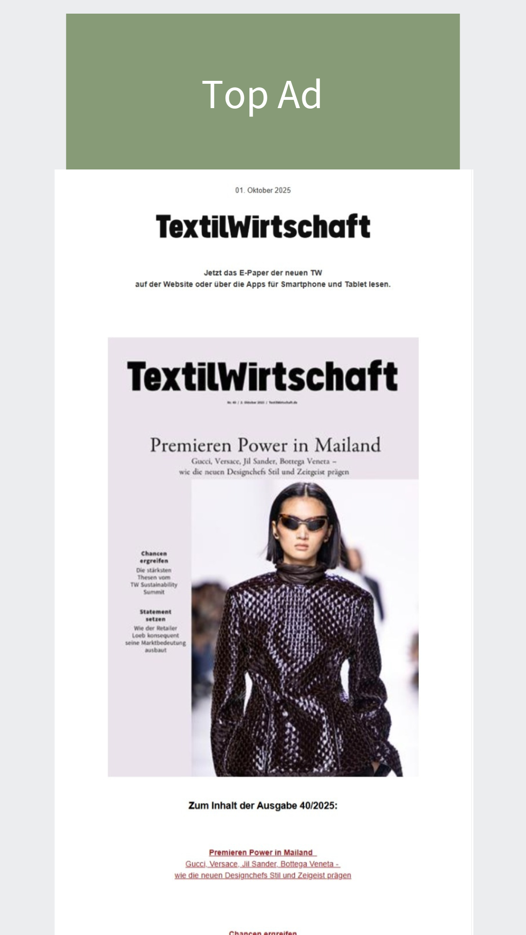 Top Ad - Vollbelegung: 32.400 € / Jahr - 2er-Rotation*: 16.900 € / Jahr
